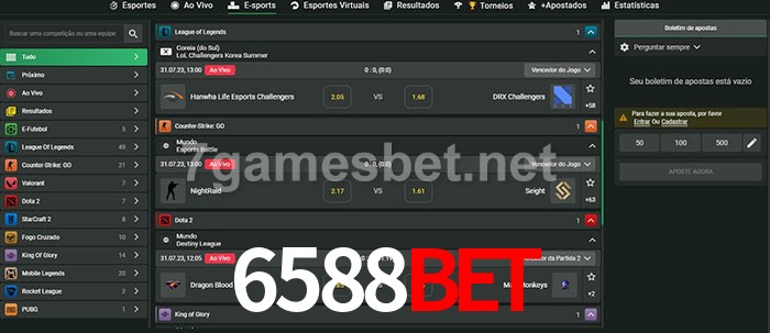 O 6588bet oferece uma grande seleção de opções de apostas em e-sports com probabilidades competitivas